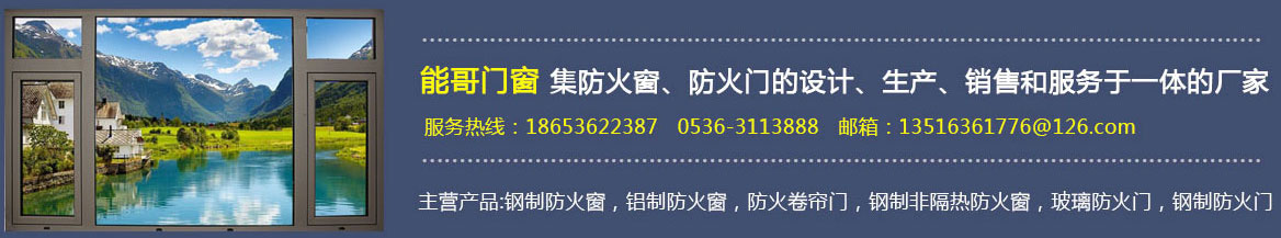 濰坊能哥門窗有限公司集鋼制防火窗,鋁制防火窗,防火卷簾門,鋼制非隔熱防火窗,玻璃防火門,鋼制防火門,防火門的設(shè)計、生產(chǎn)、銷售和服務(wù)于一體的專業(yè)廠家。 自成立以來,始終堅持精益求精的企業(yè)精神,視質(zhì)量為生命,以質(zhì)量求生存,靠信譽求發(fā)展。公司擁有雄厚的資金實力和開發(fā)設(shè)計力量,新產(chǎn)品不斷涌現(xiàn),極富創(chuàng)意的結(jié)構(gòu)設(shè)計,為你解決后顧之憂。 可廣泛應(yīng)用于現(xiàn)代化高層建筑、工業(yè)建筑、廠房、賓館、各種娛樂場所等。我們的質(zhì)量方針是:質(zhì)量為本、服務(wù)至上,以優(yōu)良的產(chǎn)品在競爭中贏得市場和信譽。公司將靈感、創(chuàng)新、細致融為一體,努力為你創(chuàng)造出舒服的人文環(huán)境。是我們永遠追求的目標,竭誠歡迎社會各界人士惠顧、合作。